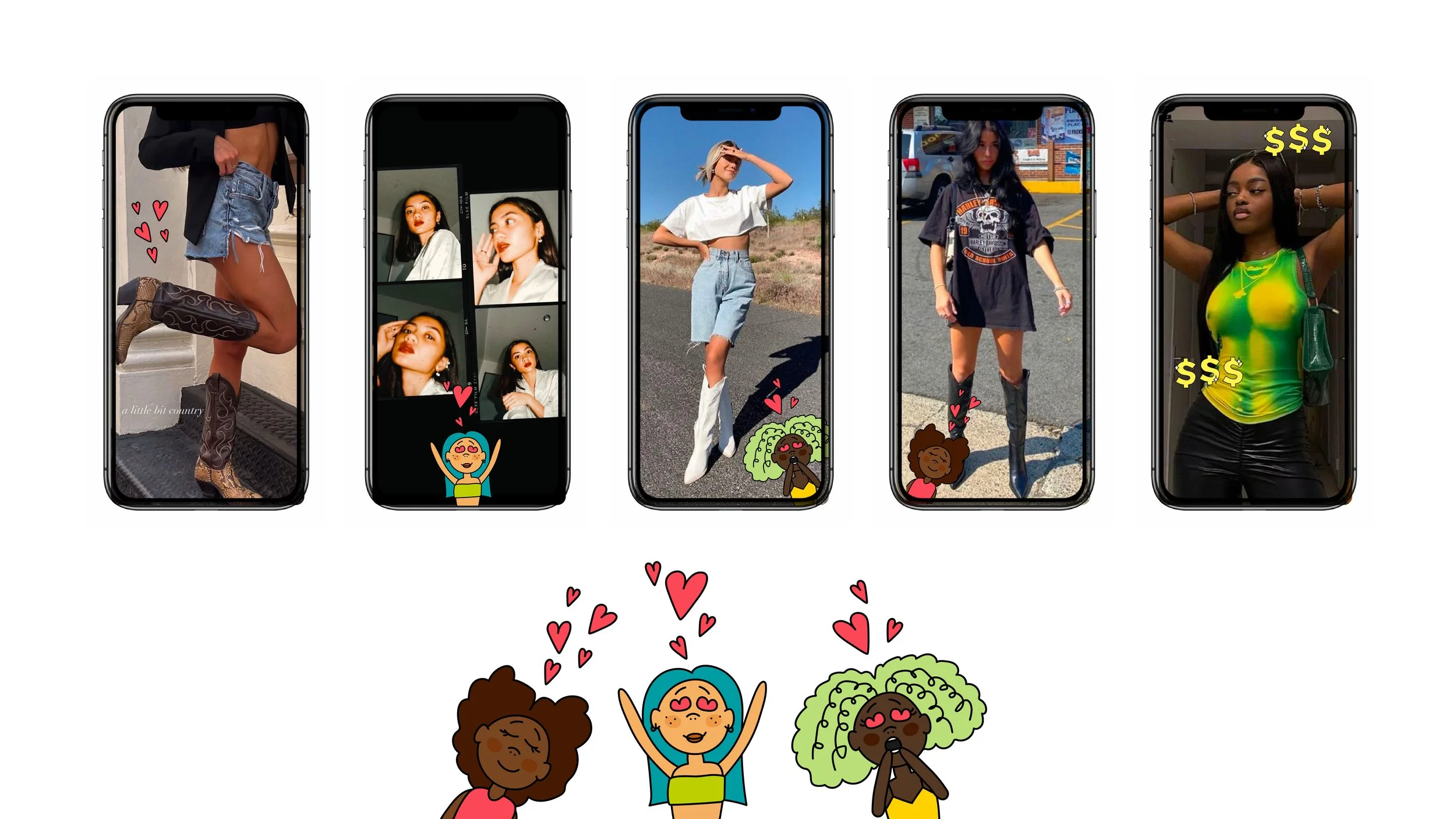 I illustrated these gifs called the lover girls. They include the three girls and the animated hearts. These are used for socials, mainly on influencer content and lifestyle/aspirational posts.