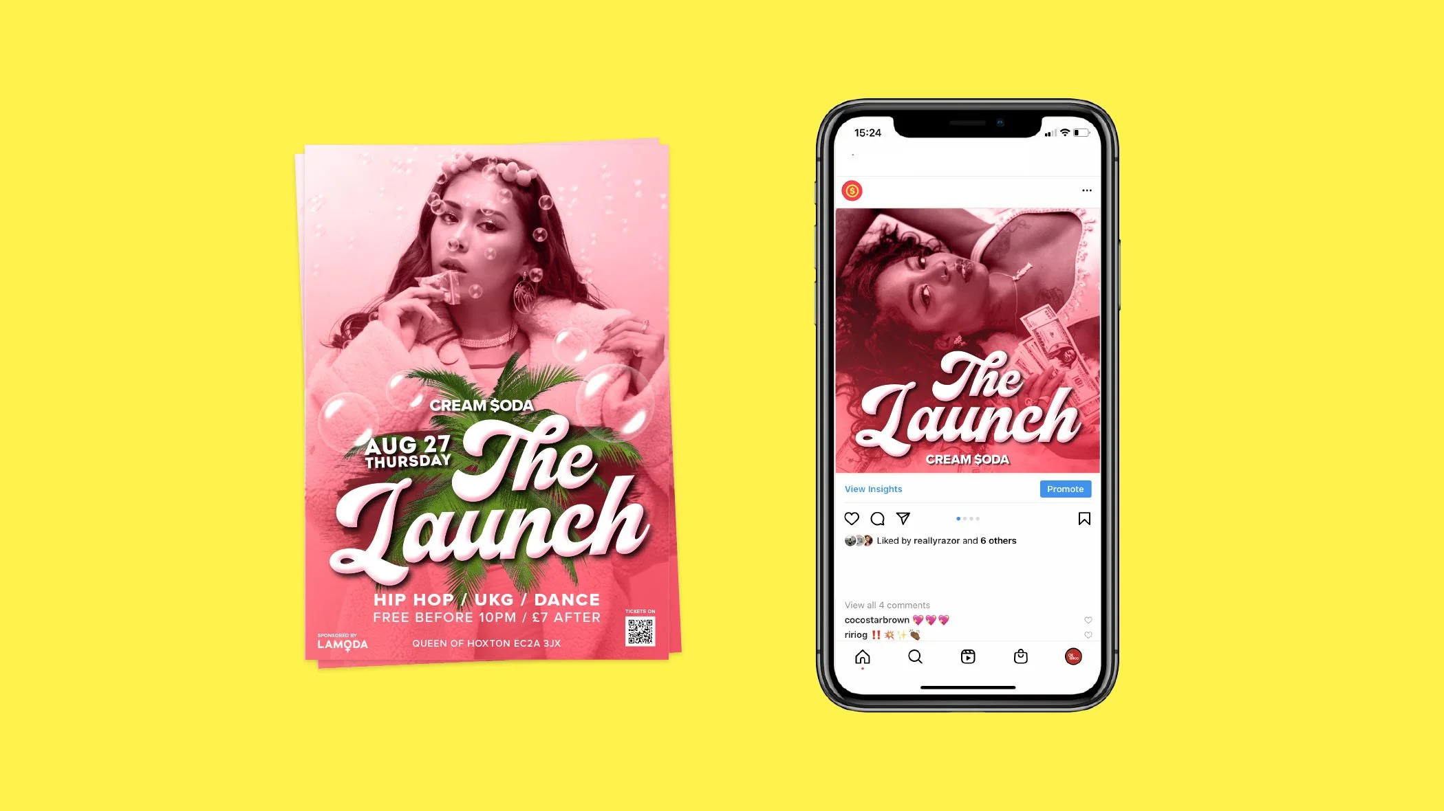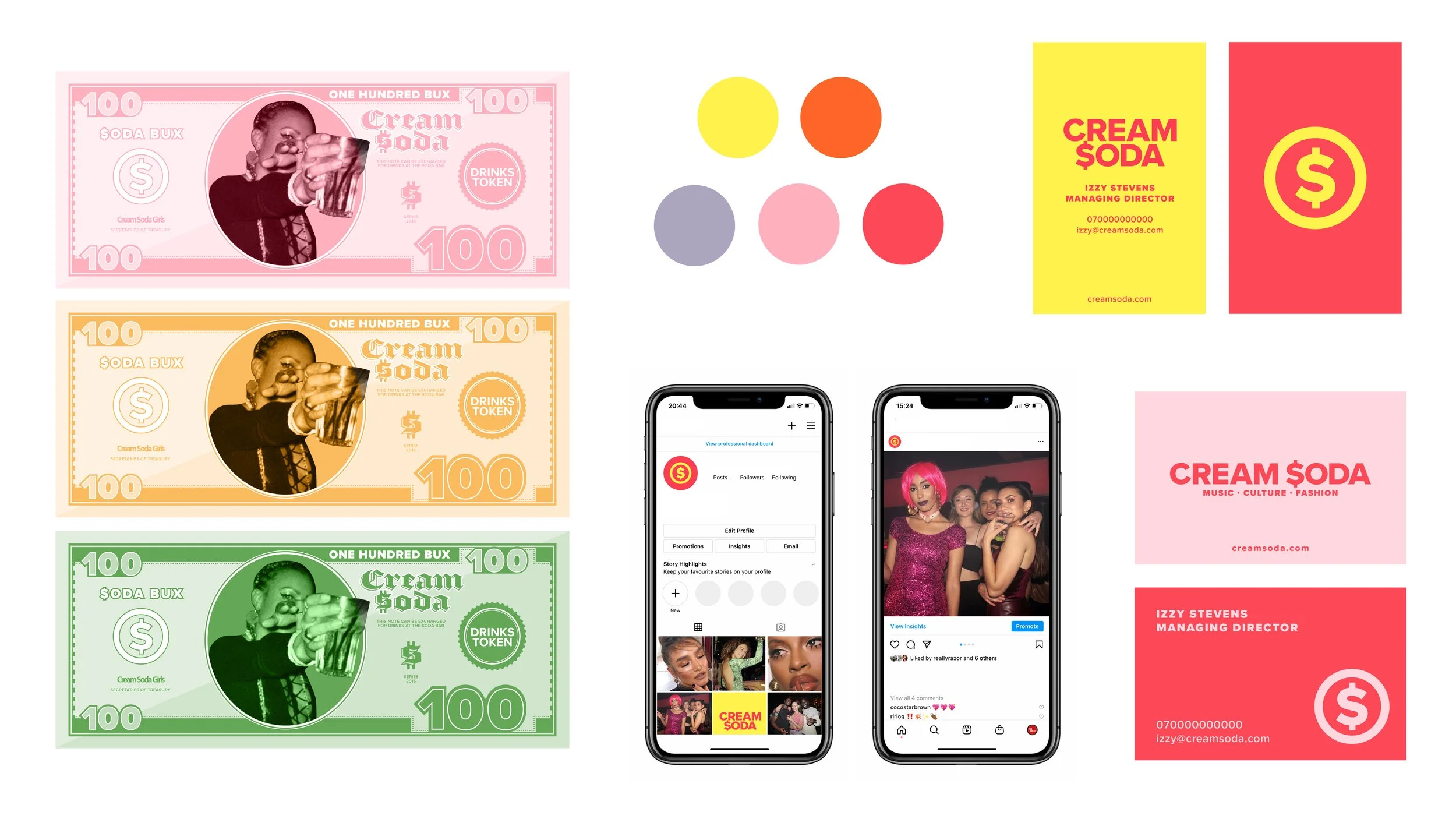 Branding, social and flyers for Cream Soda.
